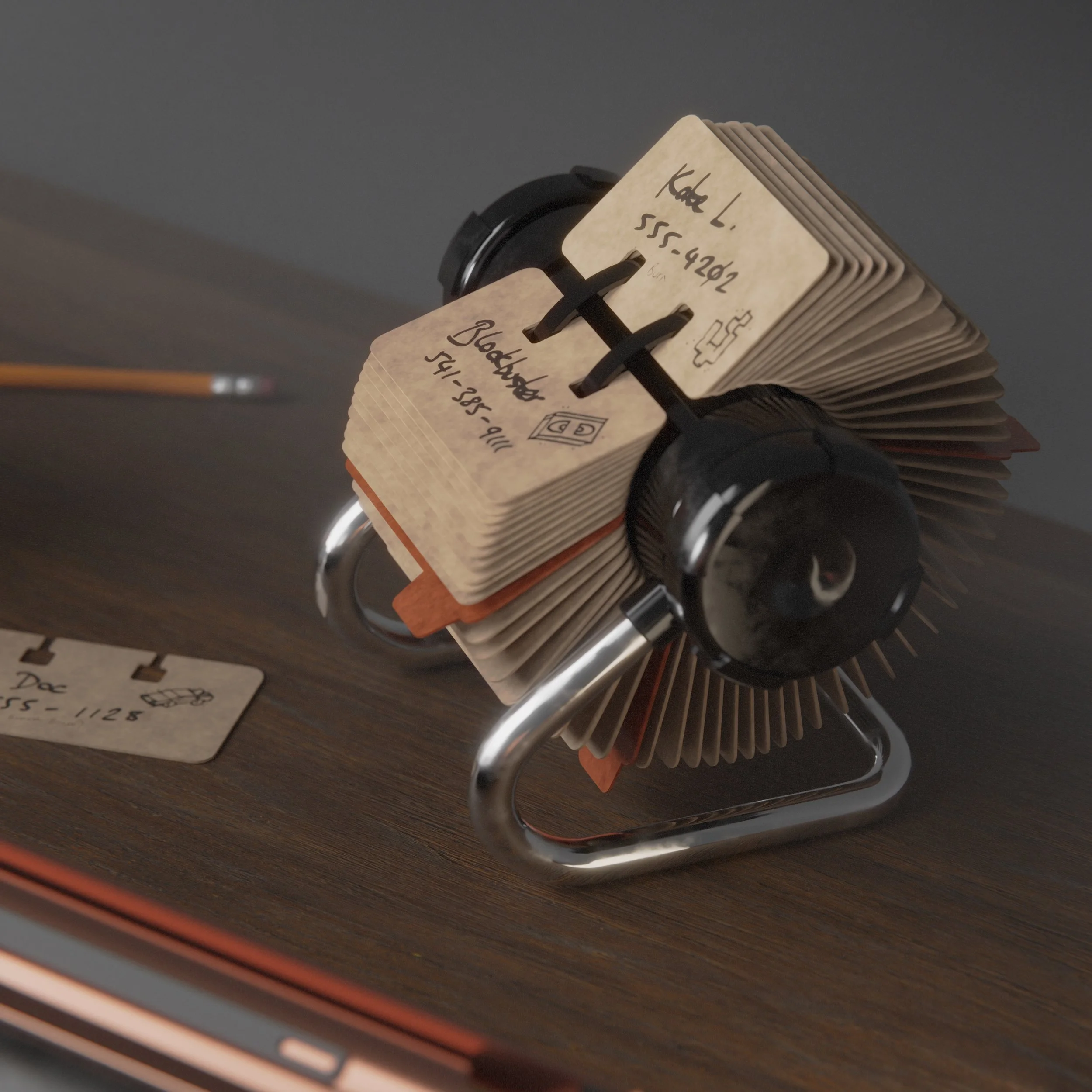 I also used this project as an opportunity to revive another asset from my Retro Tech collection; the Panasonic RC-6015, representing the mid 80s. The clock is a reference to Back to the Future, which is also echoed by a Rolodex card with Dr. Emmett Brown’s phone number on it.