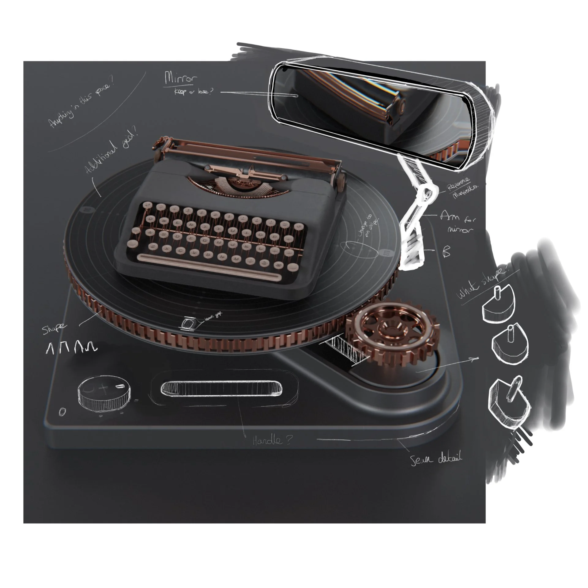 From here, I began sketching basic ideas for a turntable, keeping in mind that I wanted the turntable itself to be interesting and to push my modelling skills further.